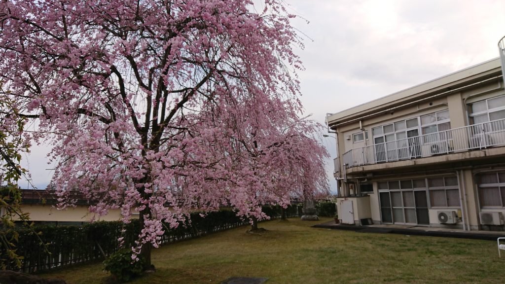 特別養護老人新川ヴィーラ本館・新館の庭のしだれ桜が満開です。残雪の北アルプス毛勝山を背景に今の季節ならでは景色がご覧になれます。ご近所の方、ご家族の皆さん、観にいらっしゃいませんか。