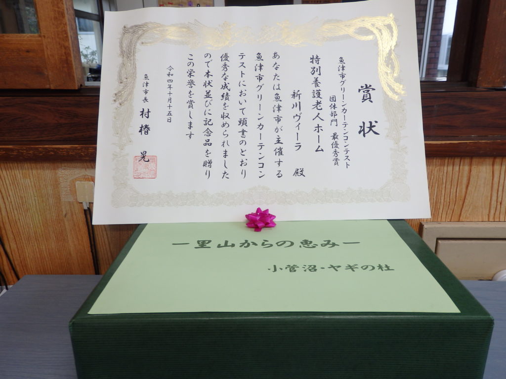 令和4年10月15日(土)、魚津市環境フェステバルにて、令和4年度グリーンカーテンコンテストの表彰がありました。そのコンテストで、新川ヴィーラの作品が団体部門で「最優秀賞」に選ばれました。