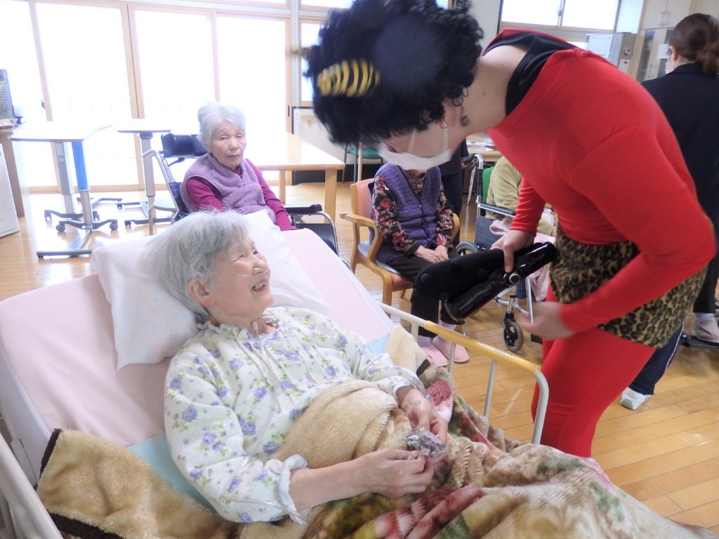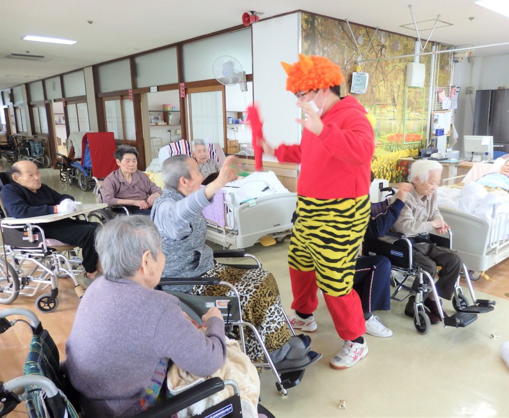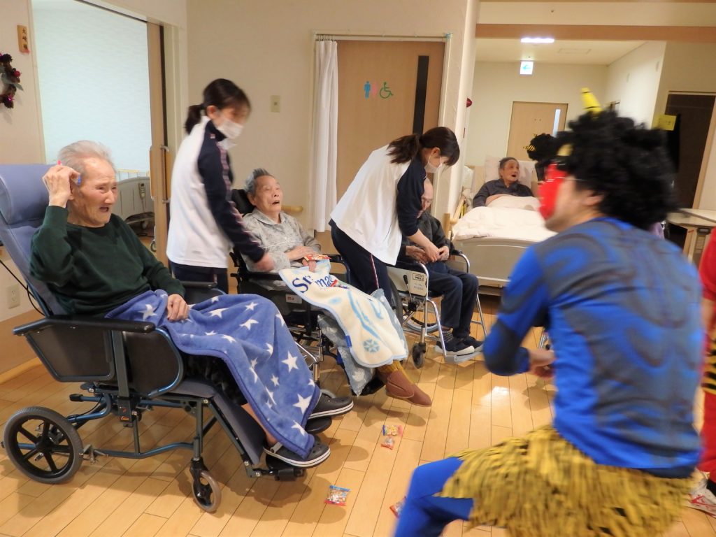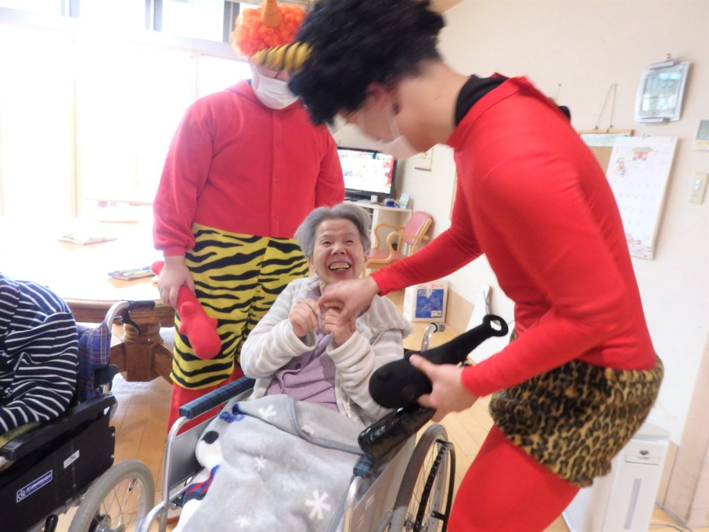 利用者の皆さんと「鬼は外~!福は内~!」と声をかけながら豆まきを行い、一緒に行事を楽しみました。
