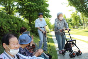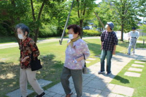 (魚津ハウス)6/2 初夏のすがすがしい天候の中、利用者さん6人で黒部にあるパッシブタウンへ出かけました。公園には新緑が広がり、気持ちよく散歩ができました。
