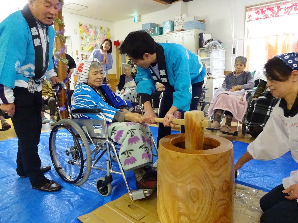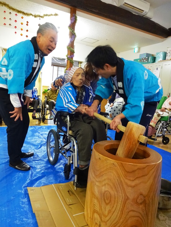 12/15、片貝ヴィーラでは恒例の餅つきを行いました。地域の方やご家族の方にも来ていただき、つきたてのお餅をあんこ餅やきな粉餅、おろし餅にして召し上がっていただきました。ご協力いただきました皆様、本当にありがとうございました!