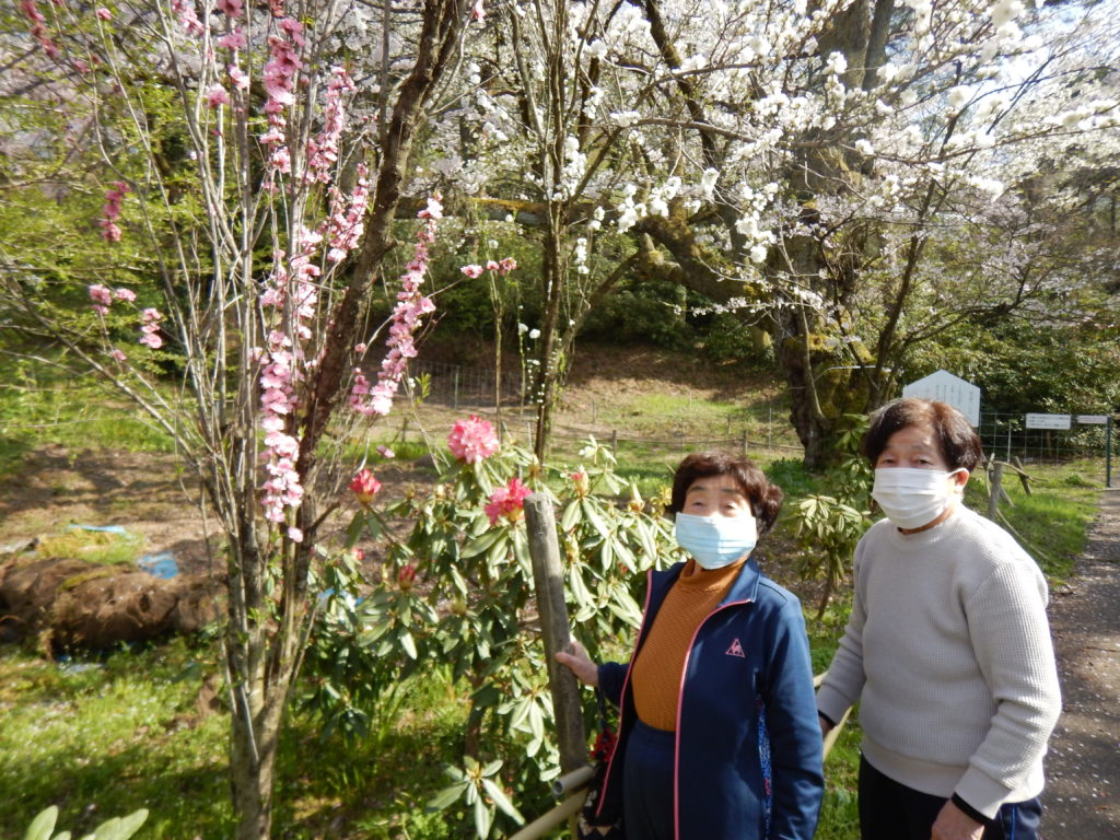 赤白、ピンクの花桃や水仙、シャクナゲなど沢山の