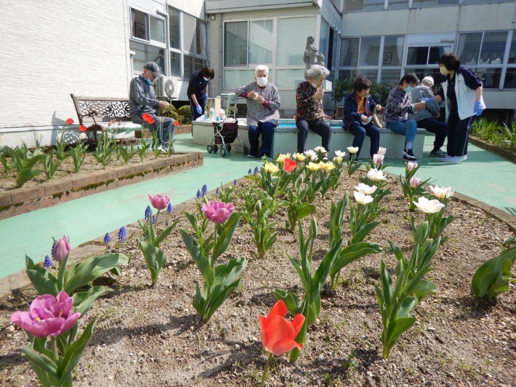 4/14(日)この日も良い天気ということで、中庭で