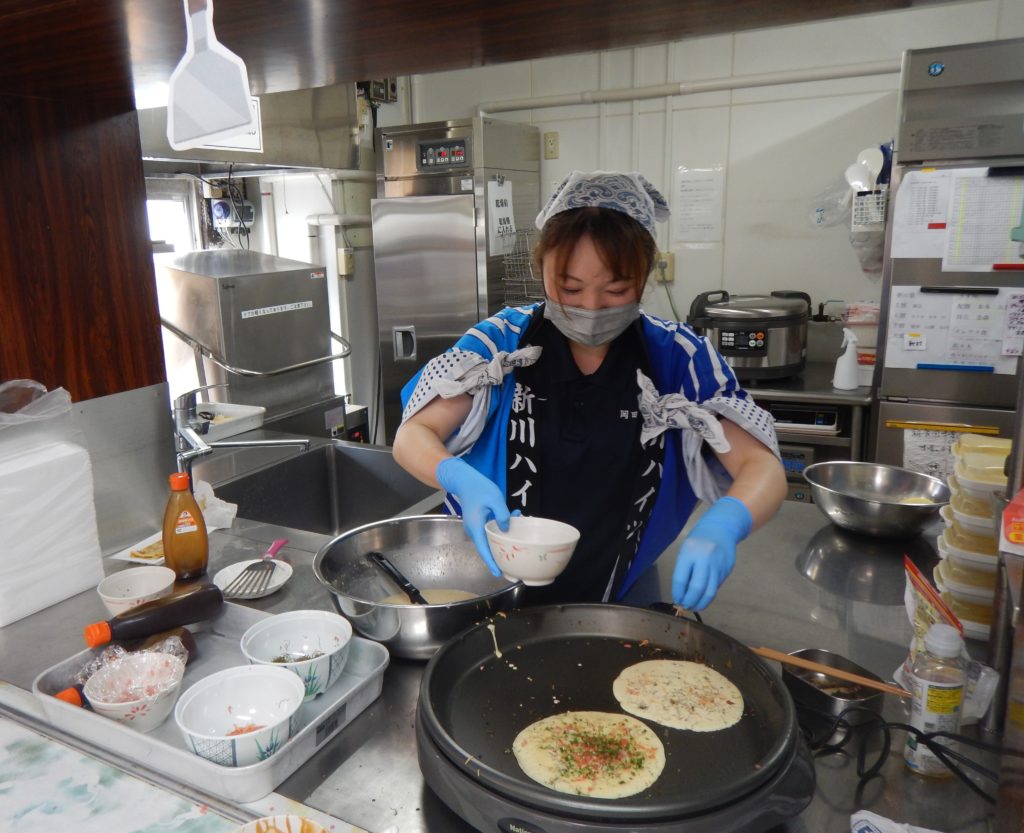 今回の目玉は、栄養士さんお手製のどんどん焼きです。