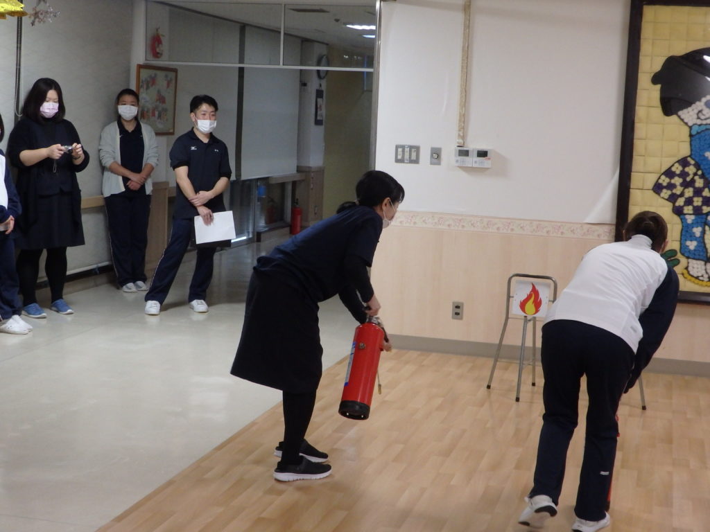 訓練は1年に2回実施しています。繰り返し行うことで、消火設備の場所や使い方を確認し、万が一の時に備えたいと思います。