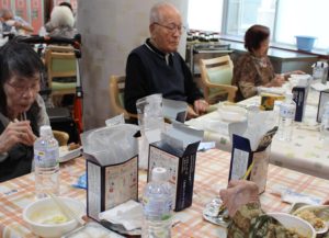 5/19魚津ハウス内で、昼食時に非常食を用いて、炊き出し訓練を実施しました。入居者さんが栄養士より非常食の加熱方法など指導を受けながら加熱調理から実食まで一連の作業を体験されました。 非常食の味も「おいしかったですよ」と感想を伺いました。
