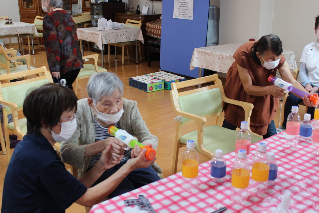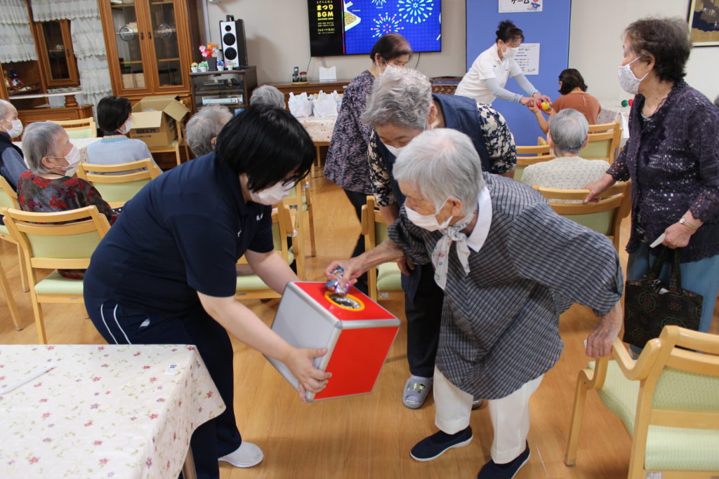 8/20(水)恒例の魚津ハウス納涼祭を開催しました。入居者の皆様に、飴つかみゲームや射的、カップボールゲームを楽しんでいただきました。